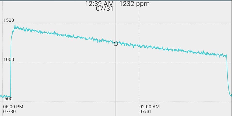 (4) Look at the data through the App of the CO2 monitor (you can also download it into a computer and graph it in Excel etc., but that is not needed).